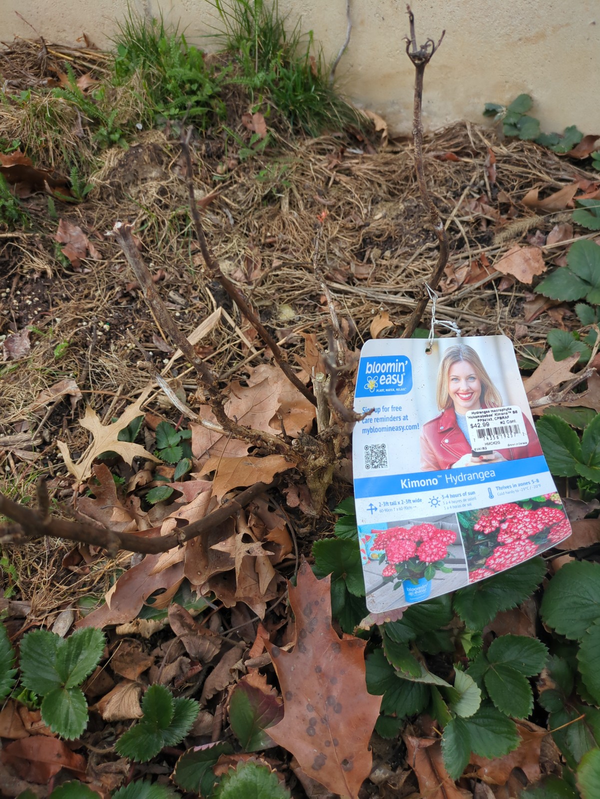 Hydrangea 'Kimono' May 1, 2025 Greenhouse foundation Genus: Hydrangea Cultivar: 'Kimono' Date Planted: 2025-05-01 Location: Greenhouse foundation Description: